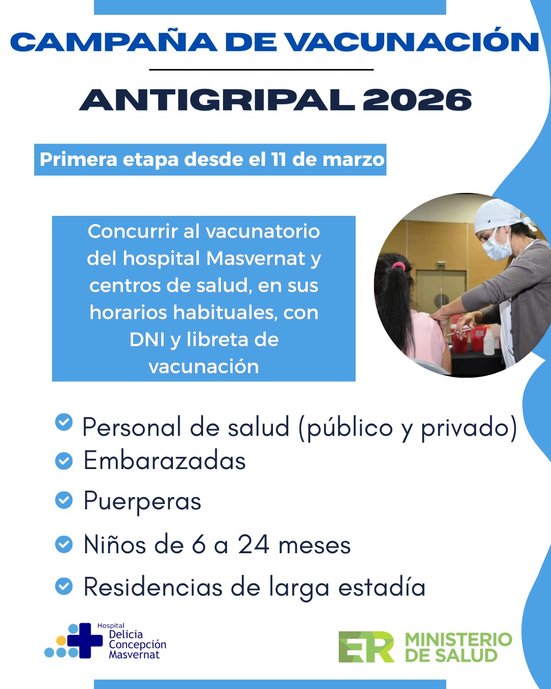 El Hospital Delicia Concepción Masvernat informa que este 11 de marzo dará inicio la primera etapa de la Campaña de Vacunación Antigripal 2026.