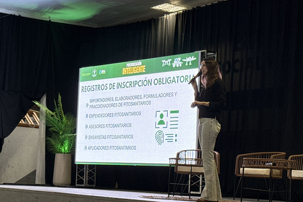 Allí, la directora provincial de Agricultura, Carina Gallegos, abrió la jornada con un panel sobre alcances y obligaciones de la Ley Provincial Nº 11.178 de buenas prácticas en materia de fitosanitarios y sus normas reglamentarias, el Decreto Nº 1719/25 y las Resoluciones Nº 1109/25 y 1472/25. «Es de suma importancia la capacitación de todas las personas humanas o jurídicas que hacen uso y manipulación de fitosanitarios. Principalmente, tanto los operarios como productores deben saber diferenciar las zonas de exclusión y amortiguamiento a la hora de trabajar en cercanías de áreas sensibles. Estas pueden ser zonas con o sin asentamientos de personas, plantas urbanas y escuelas rurales», explicó la funcionaria.