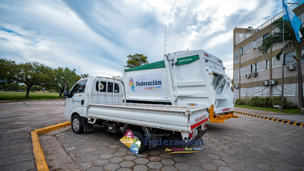 El Presidente Municipal de la ciudad de Federación Ricardo Bravo, en la jornada de este viernes, en el ingreso del Palacio Municipal, presentó y anunció a la comunidad, la adquisición de dos nuevas unidades que se destinarán para fortalecer el Parque automotor municipal. En esta oportunidad se trata de un nuevo camión recolector con sistema de levantamiento hidráulico cero Kilómetro y un camión utilitario, adquiridos tras Licitación Pública.