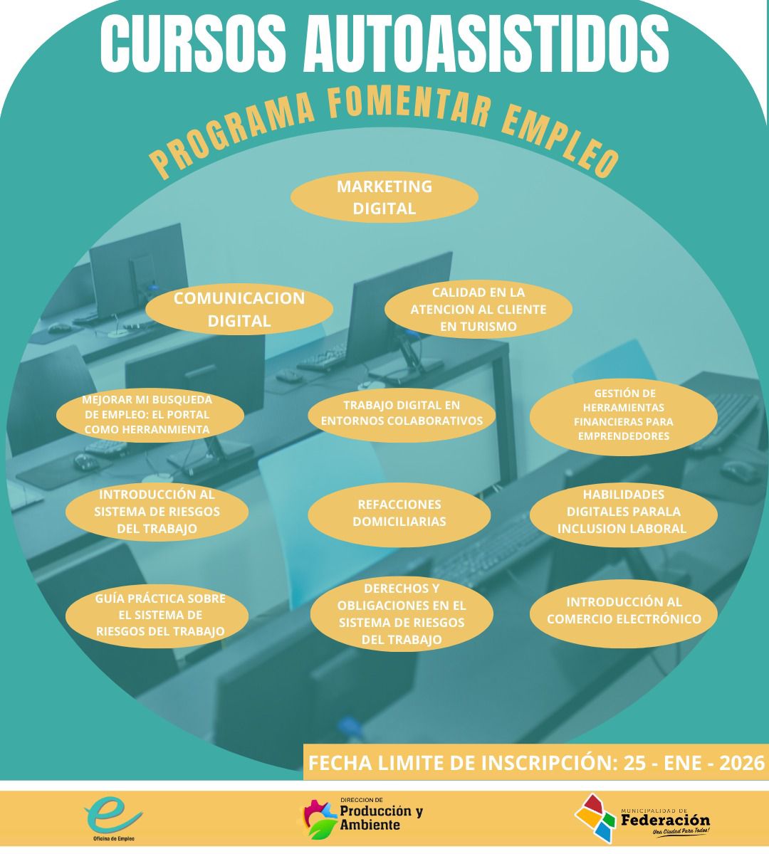 El Municipio de la ciudad de Federación, a través de la Oficina de Empleo (Dirección de Producción y Ambiente) informa que está abierta la inscripción para los nuevos cursos – ENERO 2026.