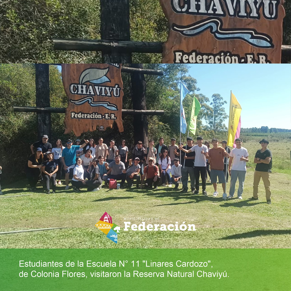 En la ciudad de Federación, estudiantes de la Escuela N° 11 «Linares Cardozo», de Colonia Flores, visitaron la Reserva Natural Chaviyú, para fomentar la educación ambiental y el cuidado del patrimonio natural y valorar la riqueza de la reserva.