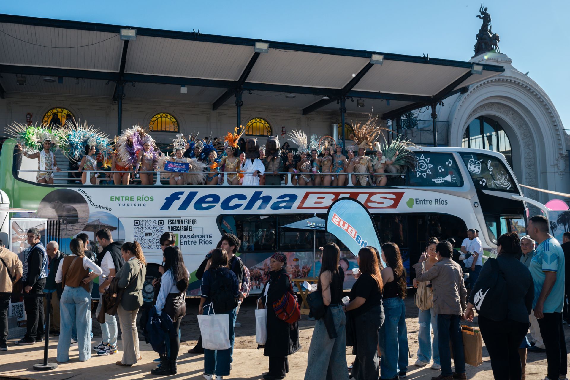 El espacio exterior fue un punto de encuentro para el público en un sector compartido con Flecha Bus donde se desarrollaron intervenciones de carnavales, propuestas interactivas de Modo Carpincho y animaciones que acercaron al turismo familiar. En paralelo, el stand en el Sector Litoral del Pabellón Nacional funcionó como zona de informes turísticos, experiencias gastronómicas y expresiones culturales, con gran poder de convocatoria.