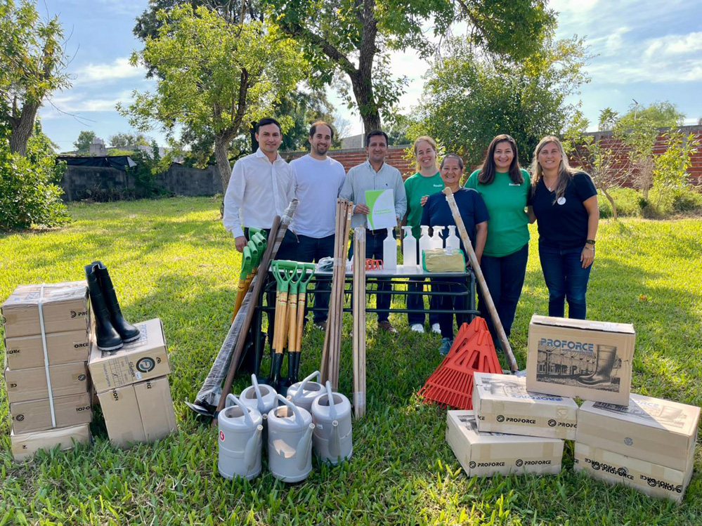 La entrega incluyó regaderas, azadas, palas, escardillos, tijeras de podar, guantes, pulverizadores y botas de goma en distintos talles, elementos fundamentales para el desarrollo de las actividades pedagógicas y productivas que se llevan adelante en la institución.