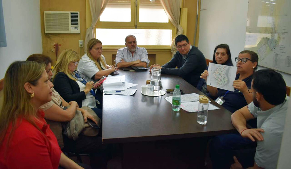 Participaron de la reunión la Directora de Atención Primaria Dra. Karina Greco, el Director de Saneamiento Ambiental Carlos Pantaleone, la Directora de Especialidades Médicas, Dra. Yamina Román, la Directora Adjunta del Hospital Masvernat, Dra. Patricia Segovia, y el Secretario Técnico del Hospital Felipe Heras, Juan Galarza.