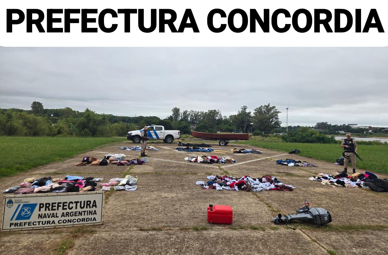 Con intervención del Juzgado Federal de Concordia, se procedió al secuestro de 10 bultos con 901 prendas de vestir, además de una embarcación de chapa de seis metros de eslora y un motor fuera de borda de 15 HP, todos elementos vinculados a la maniobra ilegal.