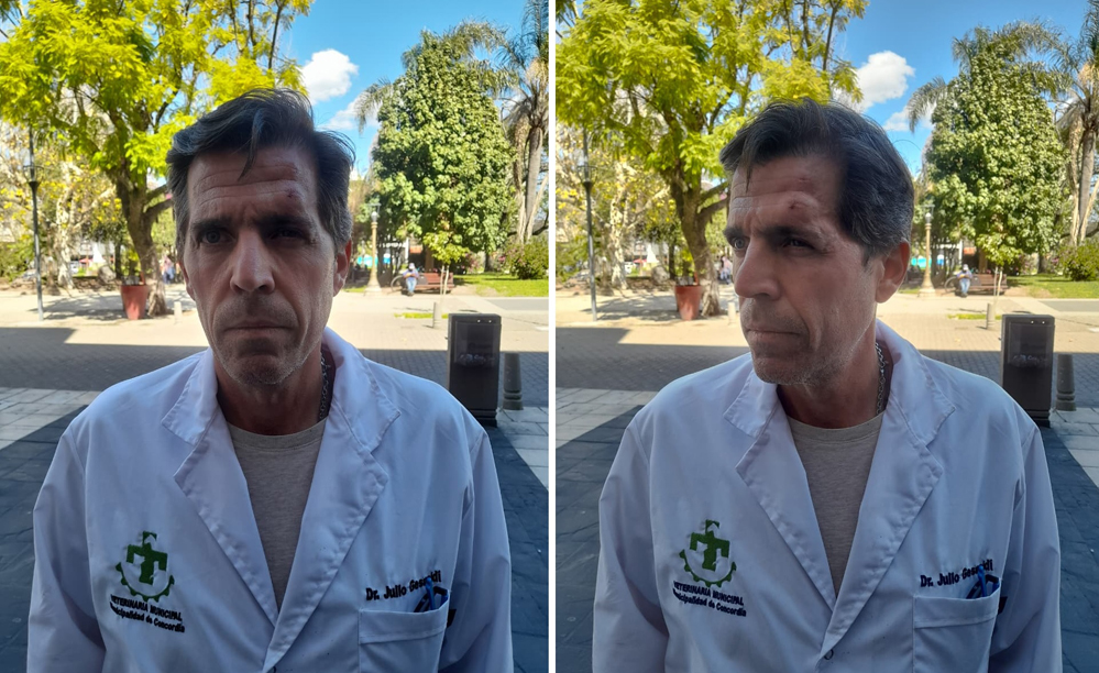 Acto seguido interviene personal policial, se detiene al agresor y es trasladado a dependencias de la Jefatura Concordia de la Policía. El Jefe del Departamento de Veterinaria, radicó la denuncia y fue revisado por el médico de la fuerza de seguridad, constatándose los golpes recibidos.