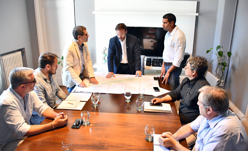 El Intendente Francisco Azcué mantuvo una reunión de trabajo con profesionales de la Comisión Técnica Mixta de Salto Grande, encabezados por el Jefe del Área de Hidrología, Ing. Guillermo Collazos y representante del Organismo Regulador de Seguridad de Presas (ORSEP).