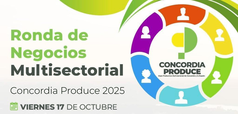 La Secretaría de Desarrollo Productivo de la Municipalidad de Concordia, la Confederación Argentina de la Mediana Empresa (CAME), la Federación Económica de Entre Ríos (FEDER) y el Centro de Comercio, Industria y Servicios de Concordia (CCISC) renuevan la invitación a participar de la Ronda Multisectorial de Negocios de “Concordia Produce: la Primera Expo Productiva Multisectorial de Concordia y la Región” y recuerdan que las inscripciones se encuentran habilitadas hasta hoy lunes 6 de octubre inclusive.