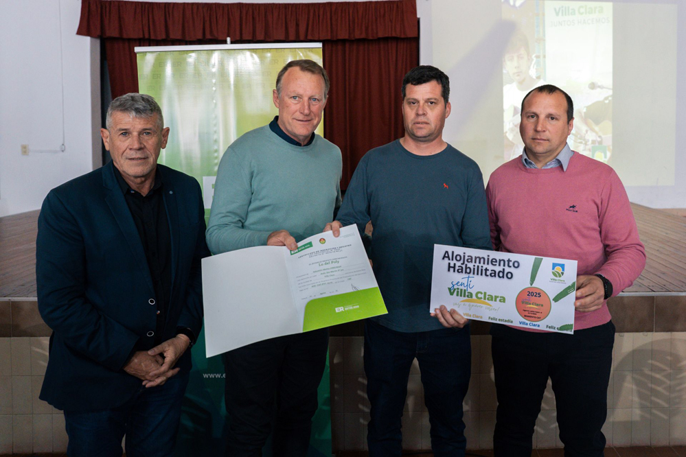 En el encuentro que se desarrolló el viernes en Villa Clara, el intendente anfitrión, Luis Guy, y el secretario de Turismo de Entre Ríos, Jorge Satto, hicieron entrega de la primera Oblea de Habilitación Municipal y del Certificado de Homologación a Lo del Poly. De este modo, la casa de alquiler turístico de Sebastián Zibelman, se convirtió en el primer hospedaje formal de la localidad de Rincones del Centro.