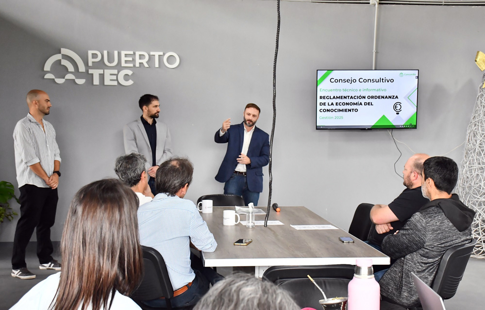 En el Nodo Tecnológico “Puerto TEC”, el Intendente Francisco Azcué encabezó un encuentro técnico e informativo sobre las exenciones impositivas establecidas mediante ordenanza para las empresas que se adhieran al Registro Municipal de Empresas de Economía del Conocimiento.