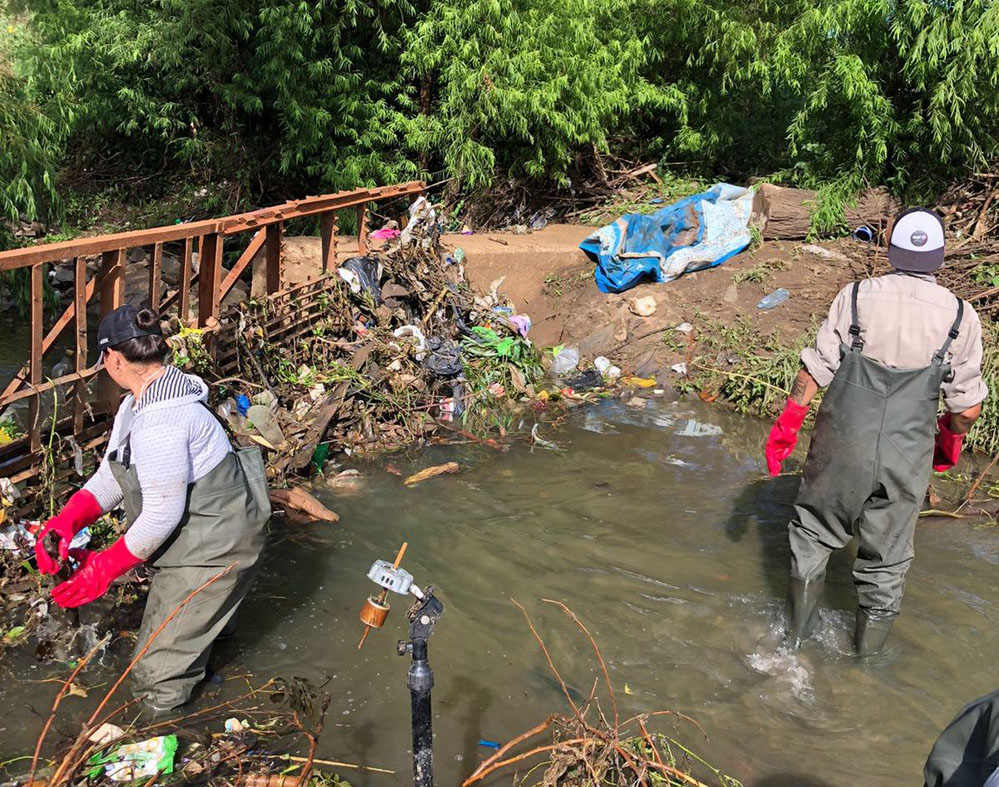 Durante la jornada se retiró una importante cantidad de residuos, principalmente plásticos no degradables, que estaban acumulados en el cauce y en sus márgenes.