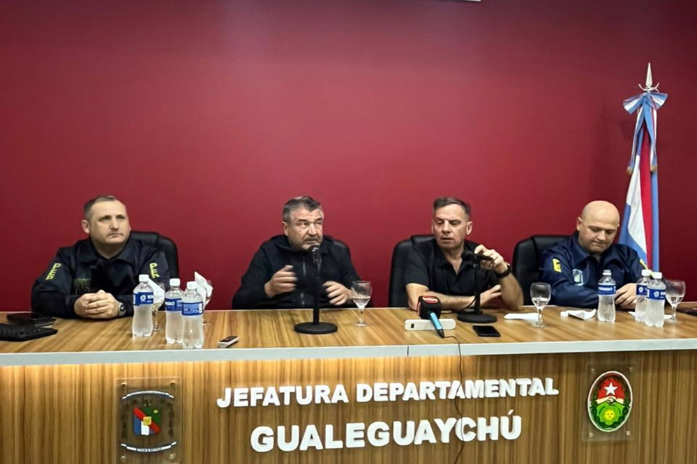 La exposición estuvo a cargo del ministro de Seguridad y Justicia, Néstor Roncaglia, el jefe de la Policía de Entre Ríos, Claudio González, y el jefe departamental de Gualeguaychú, Luis Alberto Báez. Durante la conferencia, explicaron que el hombre fue aprehendido en la entrada de un hotel de la ciudad mientras intentaba organizar su cruce ilegal hacia Uruguay junto al menor.